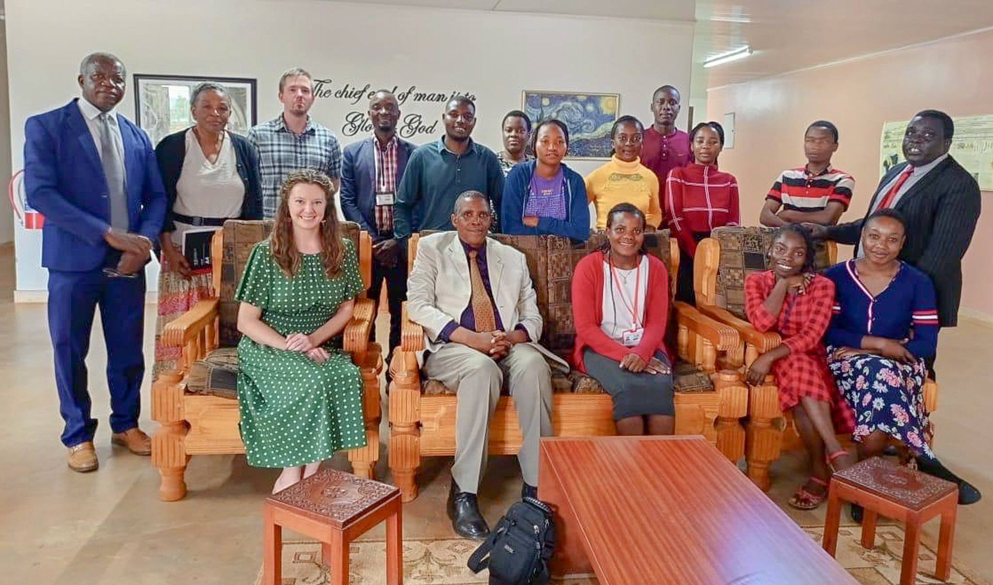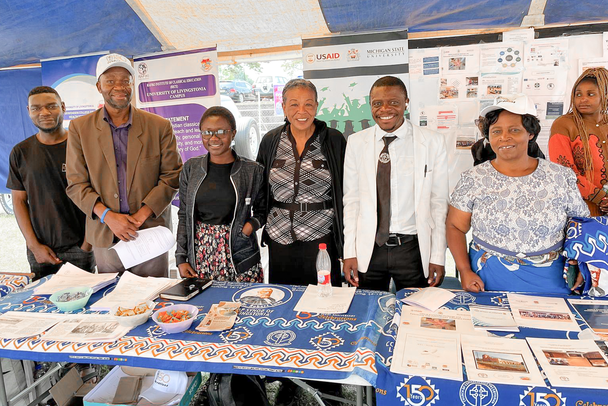 This is some of the staff and me. We are celebrating and promoting our college at the 150th year anniversary of one of our church partners, the Church of Central Africa Presbyterian (CCAP).