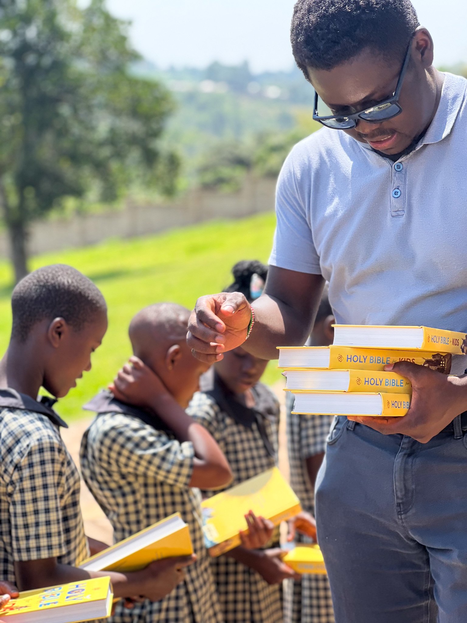 Rafiki gives Bibles to a lot of people through various organizations, but each year we receive children’s Bibles from the Rosemary Jensen Bible Foundation. These Bibles go to children who are able to read in our partner schools. Paul, as Rafiki Outreach Program Coordinator, enjoys going out and handing out these Bibles. The first group has already received their Bibles and were so joyous. Christmas came early! Paul is looking forward to delivering the rest next year when school starts.